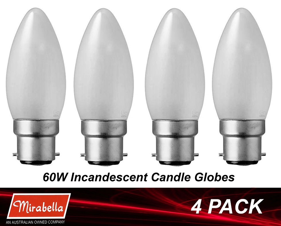 4 x 60W Pearl B22 Candle Shaped Light Globes Bulbs Lamps Bayonet Incandescent BC